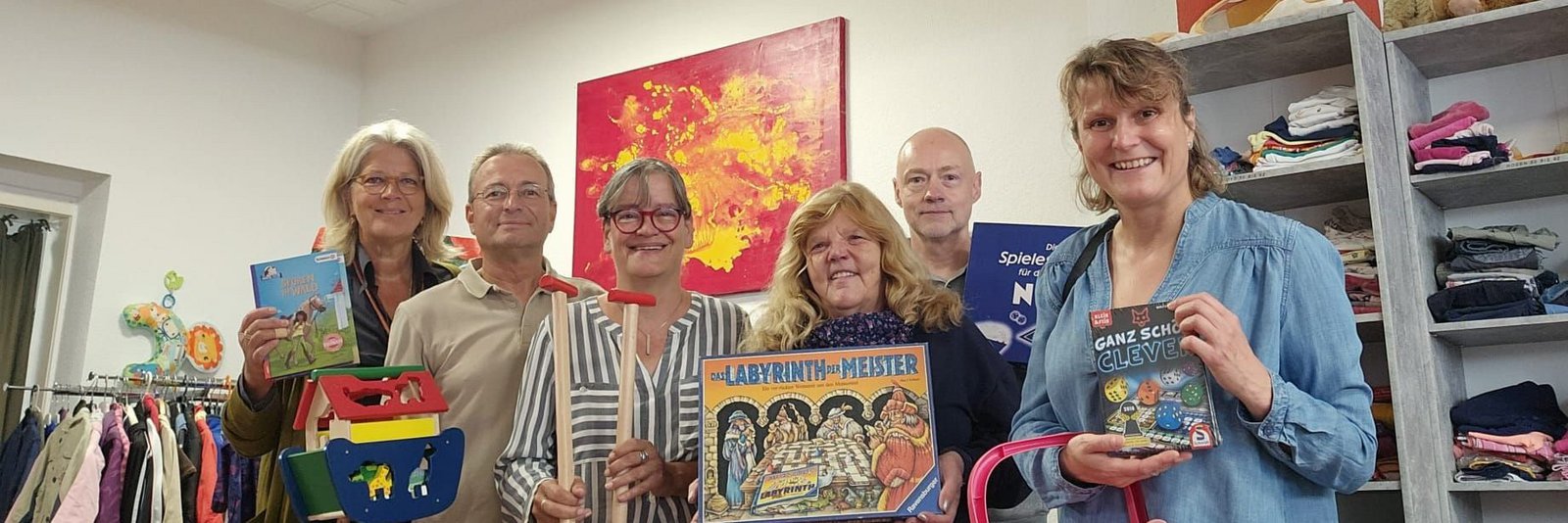 Jedes Kind hat aber nicht nur das Recht auf Bildung und die Begegnung mit Kultur, sondern auch auf angemessene Kleidung, gesundes Essen und gutes Spielzeug. Wir haben eine enge Verbindung zur Kindertafel Gelsenkirchen e.V. Dank der großen Spendenbereitschaft unserer Gelsenwasser-Kollegen, die in ihre Schränke und Keller schauen und vieles finden, fördern wir nicht nur als Stiftung mit Geld, sondern können regelmäßig auch warme Winterkleidung, Schuhe, Sommerkleidung und Spielzeug an die Kindertafel weitergeben. Heute Morgen hat sich der Geschäftsführer der Gelsenkirchener Tafel Hartwig Szymiczek wieder über einen Wagen voller Spielzeug und Bücher gefreut!